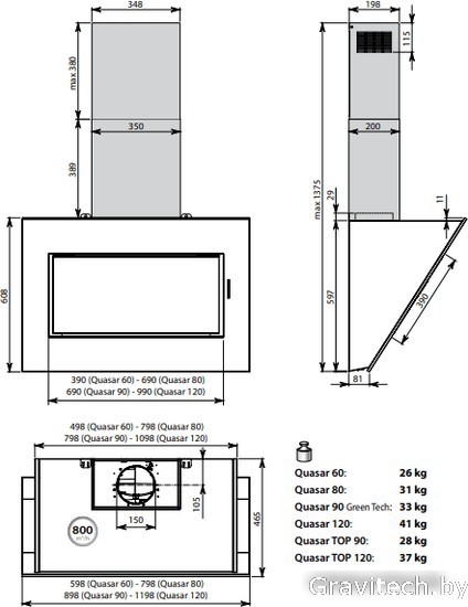 Кухонная вытяжка Falmec Quasar Green-Tech 90 800 м3/ч (черный)