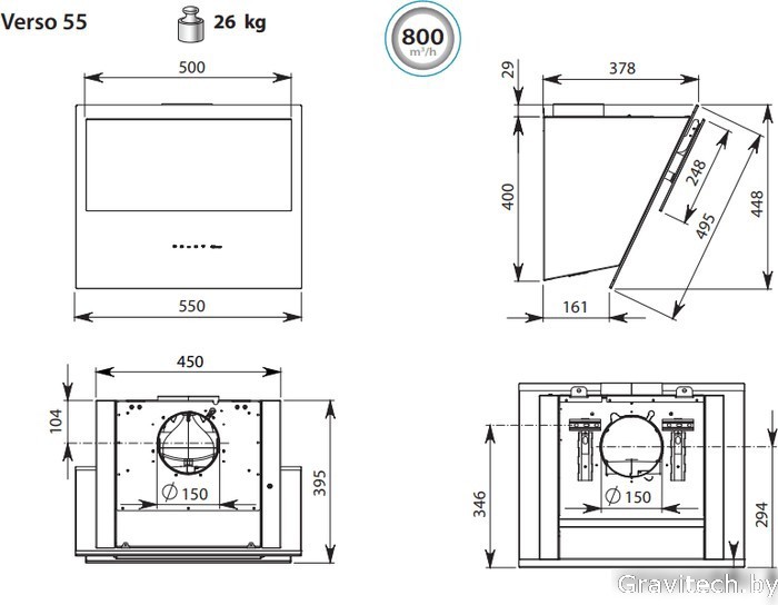 Кухонная вытяжка Falmec Verso Design 55 800 м3/ч (белый)