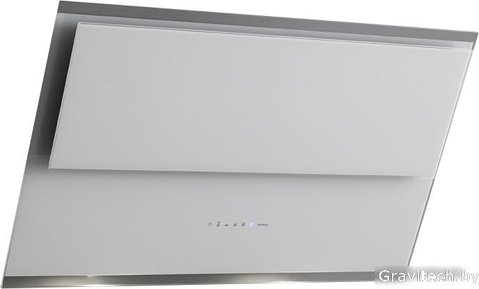 конструкция наклонная, монтаж настенный, ширина 85 см, управление сенсорное, производительность вытяжки 500 м3/ч, цвет белый/нержавеющая сталь