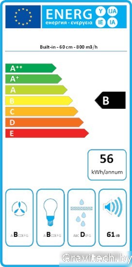 конструкция скрытая, монтаж для встраивания, ширина 56.3 см, управление электронное/кнопочное, производительность вытяжки 470 м3/ч, цвет нержавеющая сталь