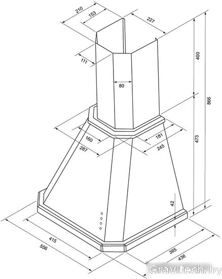 конструкция купольная, монтаж настенный, ширина 55.6 см, управление механическое/кнопочное, производительность мотора 700 м3/ч, цвет слоновая кость