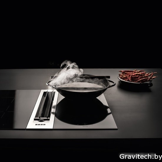 конструкция скрытая, монтаж для встраивания в столешницу, ширина 13 см, управление электронное/кнопочное, цвет нержавеющая сталь