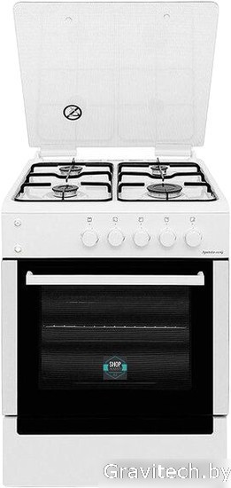 газовая панель + газовый духовой шкаф, поверхность: нержавеющая сталь, крышка из закалённого стекла, управление механическое, без таймера, размеры (ШхГхВ): 50x57x85 см, цвет белый