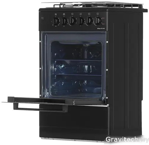газ+электро панель + электрический духовой шкаф, газ-контроль конфорок, поверхность: эмалированная сталь, крышка из закалённого стекла, энергопотребление A, управление механическое, без таймера, размеры (ШхГхВ): 50x57x85 см, цвет черный