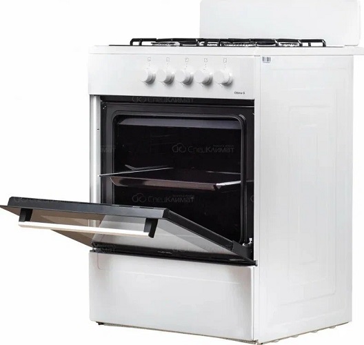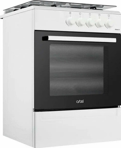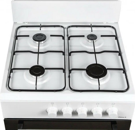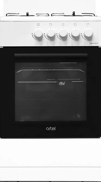 варочная поверхность: газовая на 4 конфорки, эмалированная сталь; духовой шкаф: газовый, объем 52.8 л, 2 стекла в дверце; управление механическое, газ-контроль, размеры (ШхГхВ): 50x57x85 см, цвет белый