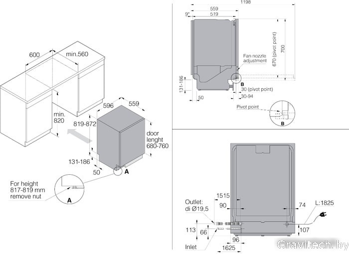 загрузка на 14 комплектов посуды, электронное управление, 7 программ, 59.6?55.9?82 см, серебристый цвет, сушка: вентиляционная, индикация на полу: луч