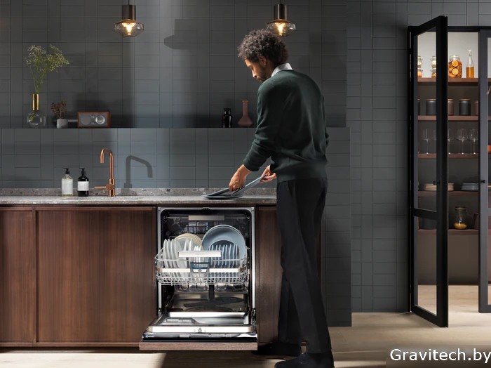 загрузка на 14 комплектов посуды, сенсорное управление, 8 программ, 59.6?55?82 см, черный цвет, сушка: конденсационная, индикация на полу: проекция дисплея
