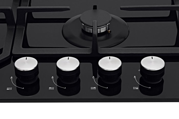 газовая на 4 конфорки, закаленное стекло, мощность: 7800 Вт, автоматический электроподжиг, газ-контроль, решетки: чугун, независимая установка, размеры (ШхГ): 60x51 см