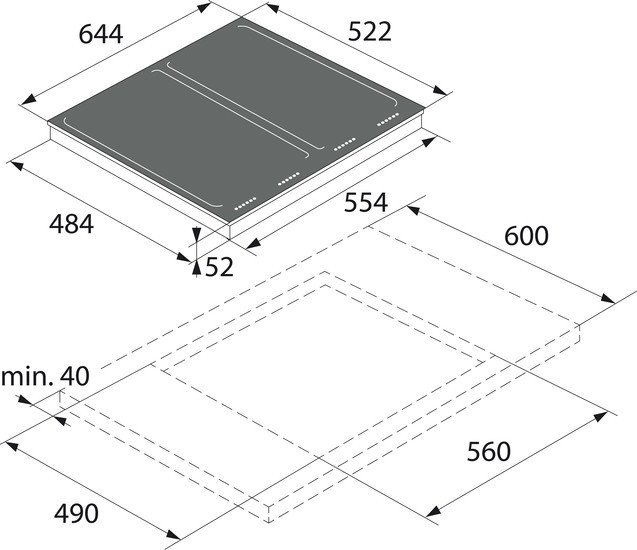 индукционная на 4 конфорки, cтеклокерамика, мощность: 7400 Вт, автоматика закипания, независимая установка, размеры (ШхГ): 64.4x52.2 см