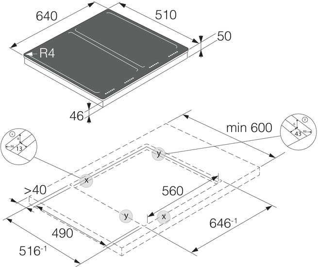 индукционная на 4 конфорки, cтеклокерамика, независимая установка, размеры (ШхГ): 64x51 см
