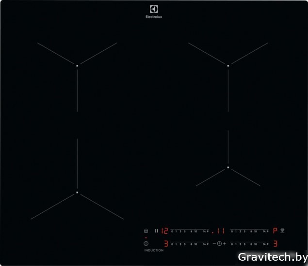 Левая передняя конфорка: 2300/3200Вт / 210мм; Левая дальняя конфорка: 1800/2800Вт / 180мм; Правая передняя конфорка: 1400/2500 Вт / 145 мм; Правая задняя конфорка: 1800/2800Вт / 180мм |